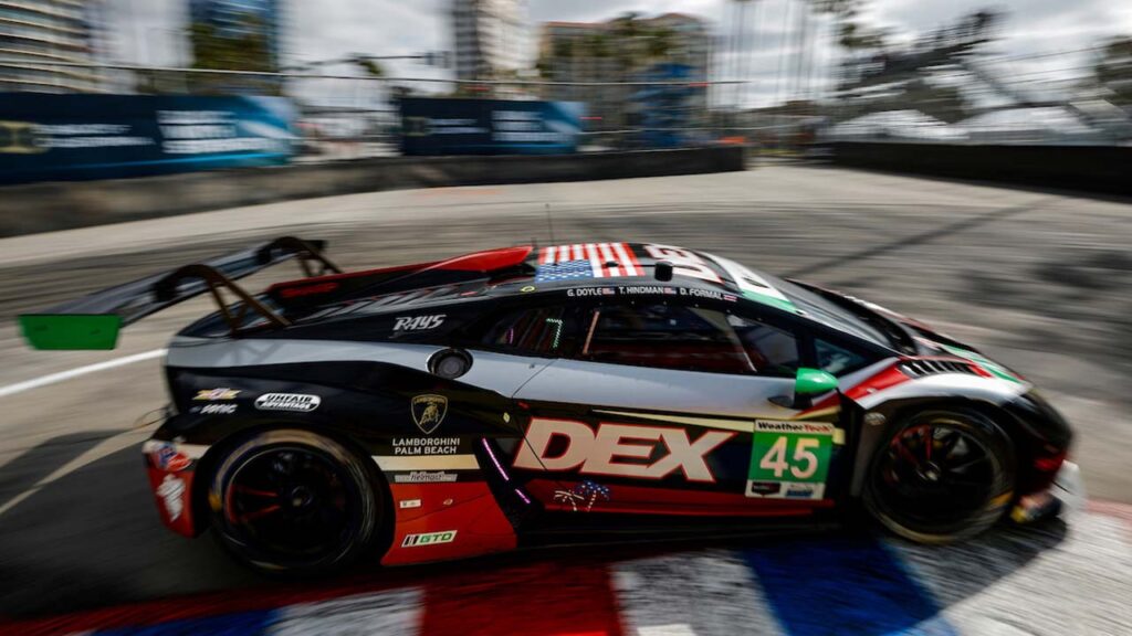 • O #46 Pfaff Motorsports Lamborghini Temerario GT3 (Lamborghini) em 8.º, com o estreante Zachary Vanier